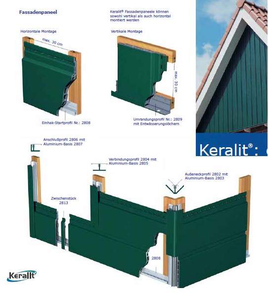 Hinterlüftete Fassaden Keralit - für waagerechte ,diagonale und senkrechte Verlegung geeignet